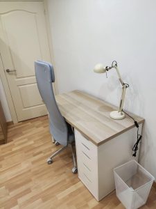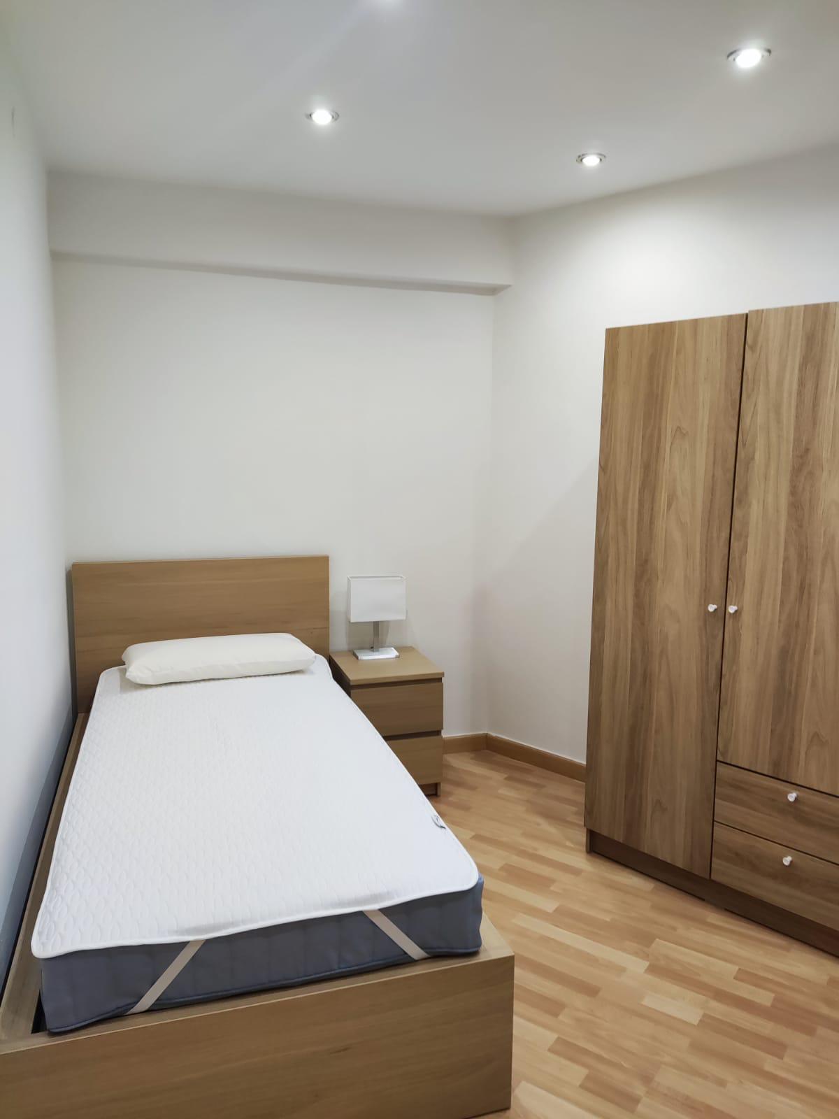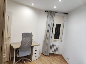 Habitació en ple centre de Girona equipada amb llit, taula, cadira de despatx, llum, armari. Tot el mobiliari de l'habitació està gairebé nou per estrenar.